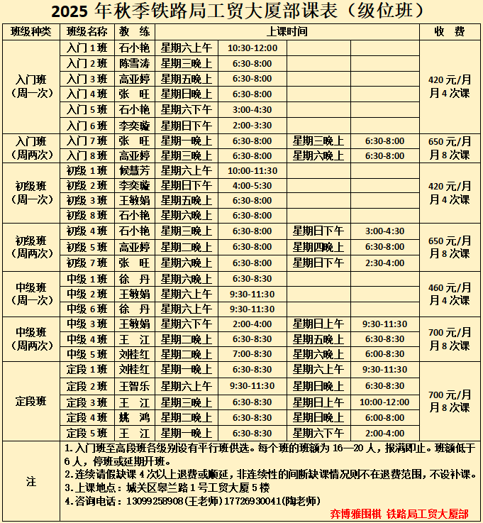2025年秋季铁路局工贸大厦部开学时间安排及收费